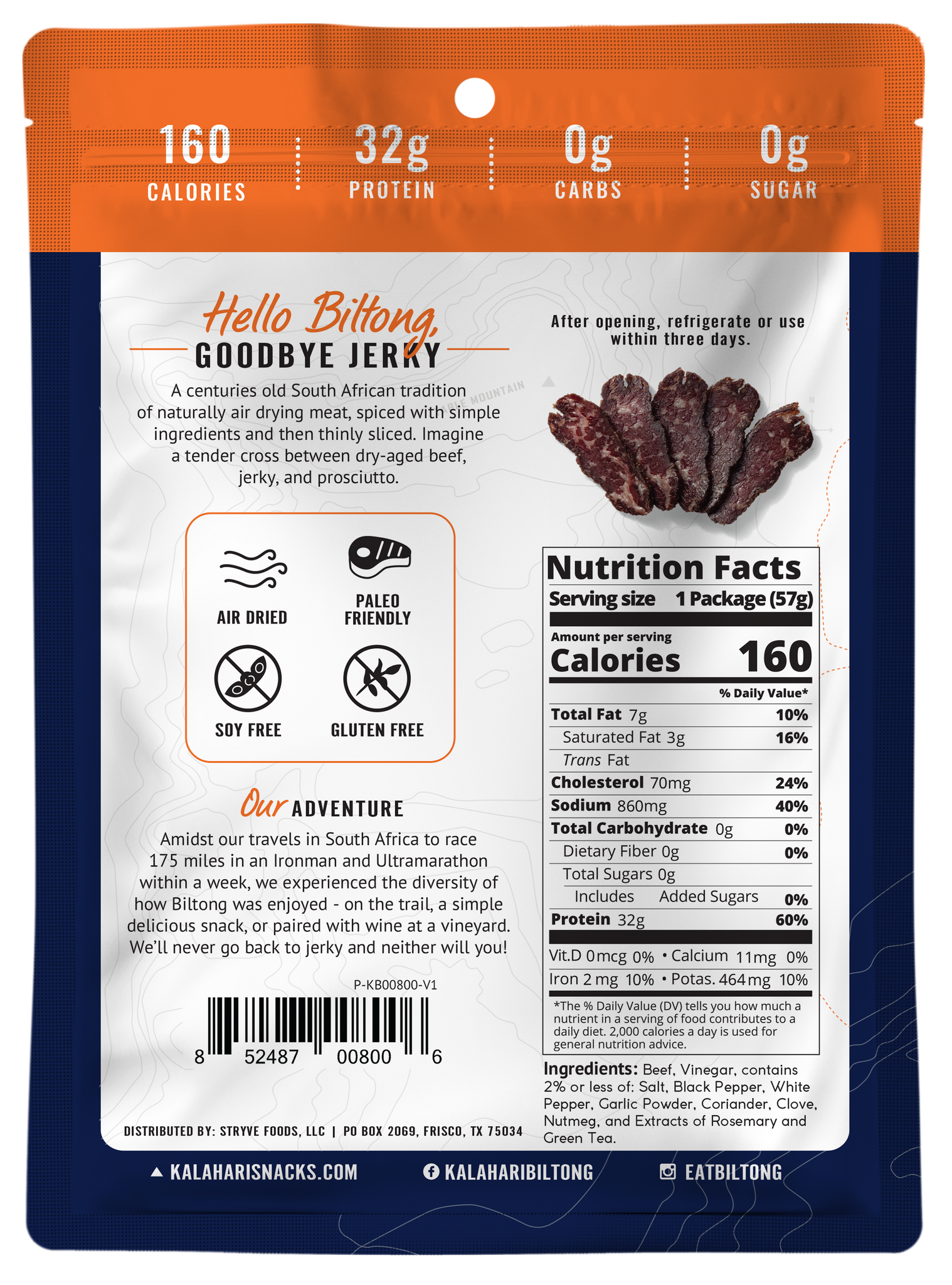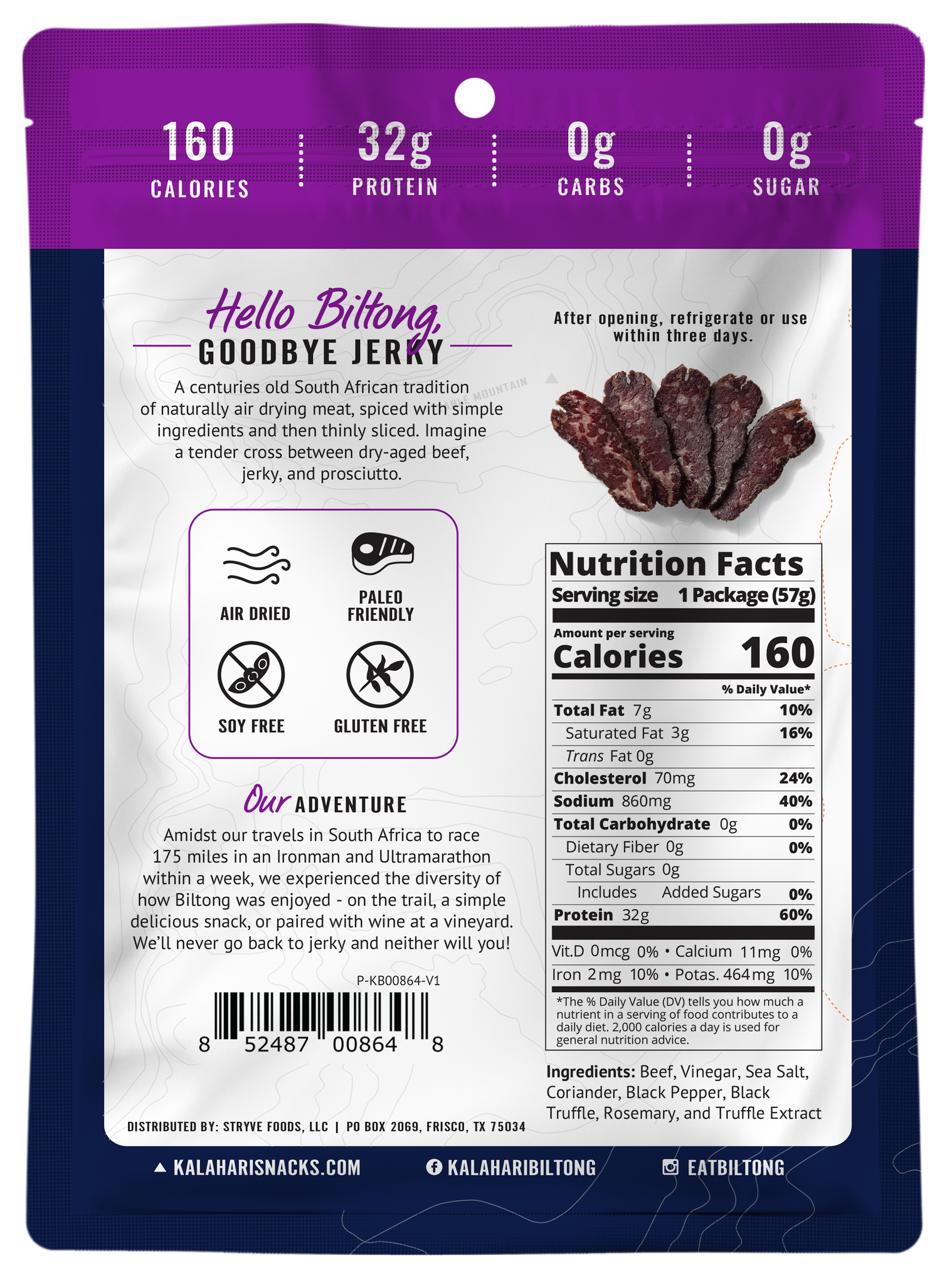 Biltong is an all natural process of preserving meat that originated in South Africa. Our biltong is air dried, spiced with simple ingredients and then thinly sliced. This process ensures that our beef retains its full flavor, tenderness and nutritional integrity. Imagine unique cross between dry-aged beef, jerky, and prosciutto. Try our Herb Variety 3-pack, which contains one bag each of Original, Rosemary Truffle, and Garlic biltong!